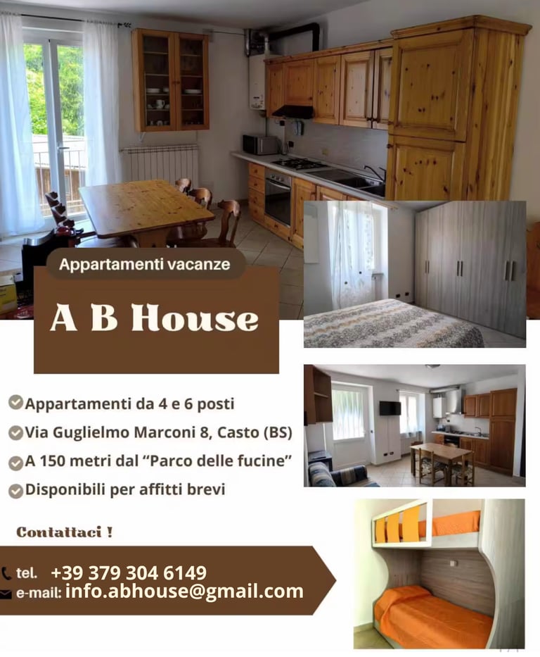 L'appartamento si trova a Casto, a soli 200 metri dal Parco delle Fucine Ferrate, immerso nella natura.